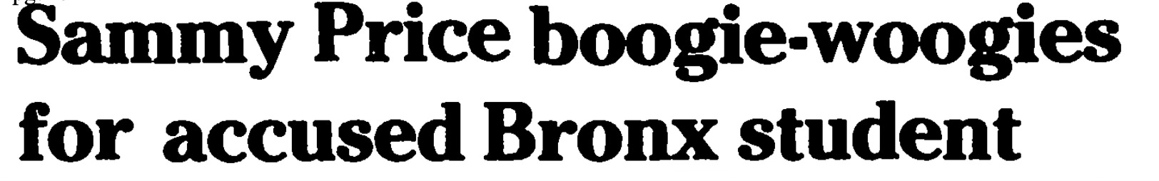 Finally, I would have seen this story, with a photo of Sammy Price, from a 1983 issue of the Amsterdam News, announcing that Mr. Price would hold a fundraiser at the West End Cafe for a college student arrested during spring break in Florida for allegedly assaulting two white girls.