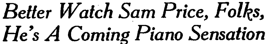 “For your edification, Sam Price is a piano player, and a doggone good ‘un whose rhythms come from Deep Elm street of his native Dallas; the jive joints of Chicago’s South Side; the swing parlors in St. Louis and Kansas City and in other perfectly solid parts of this good old U.S.A….